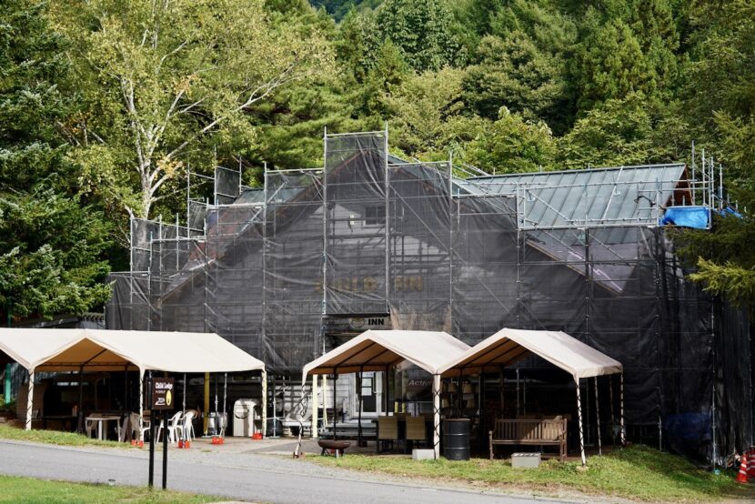 チャイルドインの屋根の張り替えと塗装を行っています。 このチャイルドインはスキー場初期からある年季の入った建物…